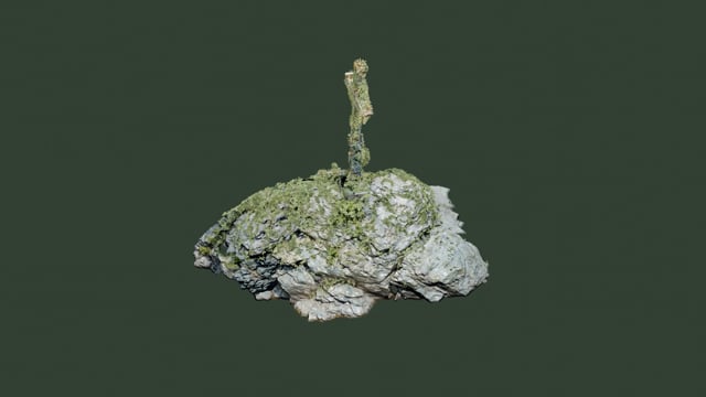 J’ai été particulièrement interpellée par le Rocher au Pin Solitaire, un ilot rocheux situé dans la rivière Saint-François, à Sherbrooke, que j’ai photographié et filmé à plusieurs reprises lors de promenades à l’hiver 2023. Perplexe par la présence d’une croix métallique le surplombant, j’ai initié des recherches au Musée d’histoire de Sherbrooke à l’automne suivant. J’y ai pris connaissance de l’importance de ce lieu identitaire pour la région, d’hier à aujourd’hui.